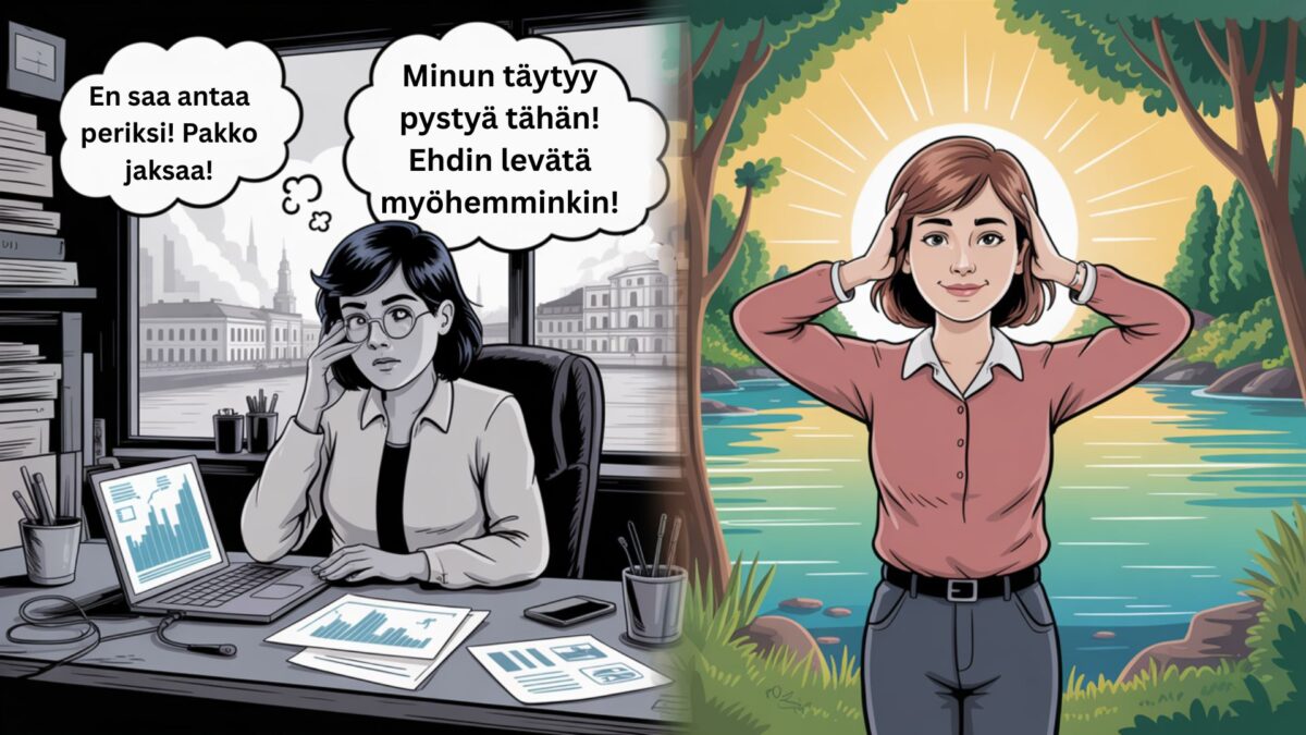 Tuntuuko, että sinun pitäisi jaksaa paremmin? Tunnista vaativuuden tunnelukko ja sen yhteys uupumukseen. Opi keinoja kohtuuttomista odotuksista irti päästämiseen.